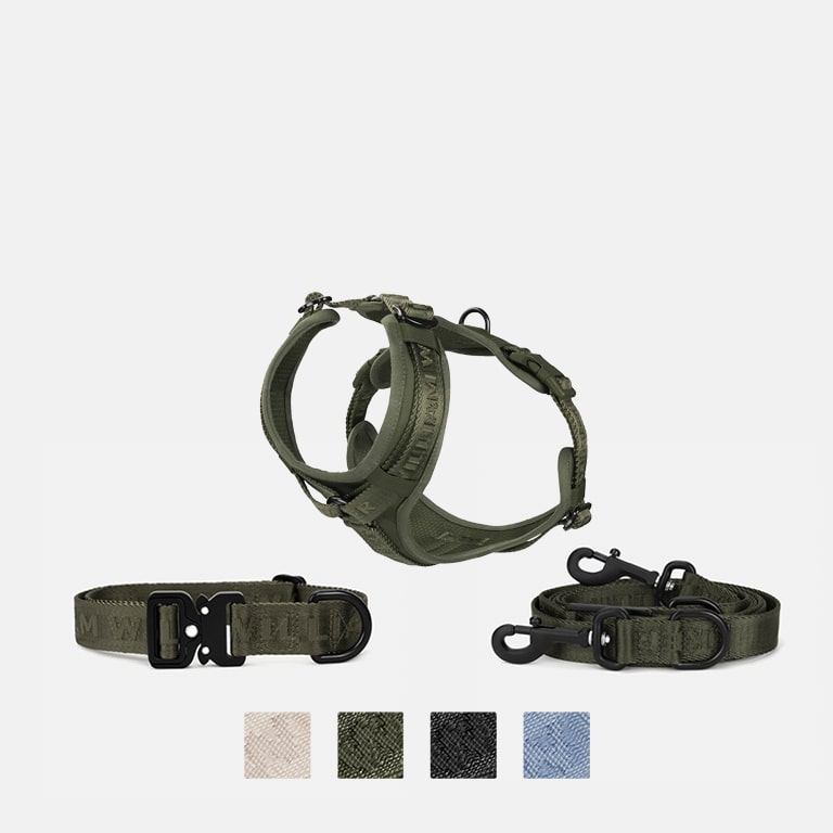 Our collections are carefully curated to give you and your dog a harmonious overall look. Each set includes matching collars, leashes, poop bag dispensers, and treat pouches that are perfectly aligned in design and material. You’ll always be stylish and well equipped on the go.