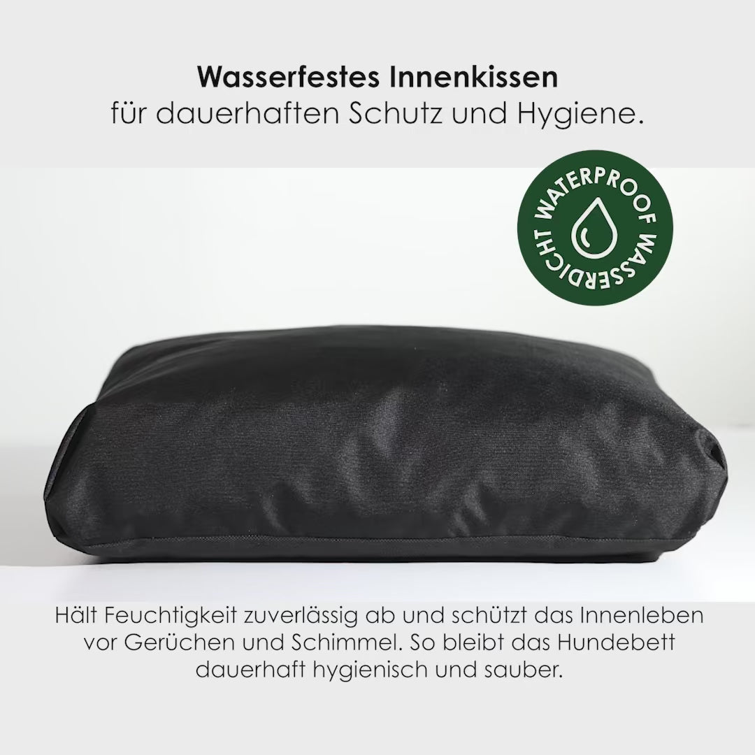 The inner cushion has a water-repellent layer that reliably keeps moisture out. This means your dog's bed always stays hygienically clean - whether after a walk in the rain or a little mishap.